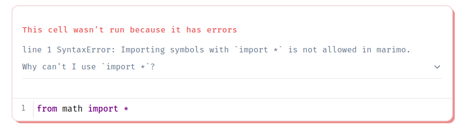 Star imports are incompatible with marimo's git-friendly file format and reproducible reactive execution: